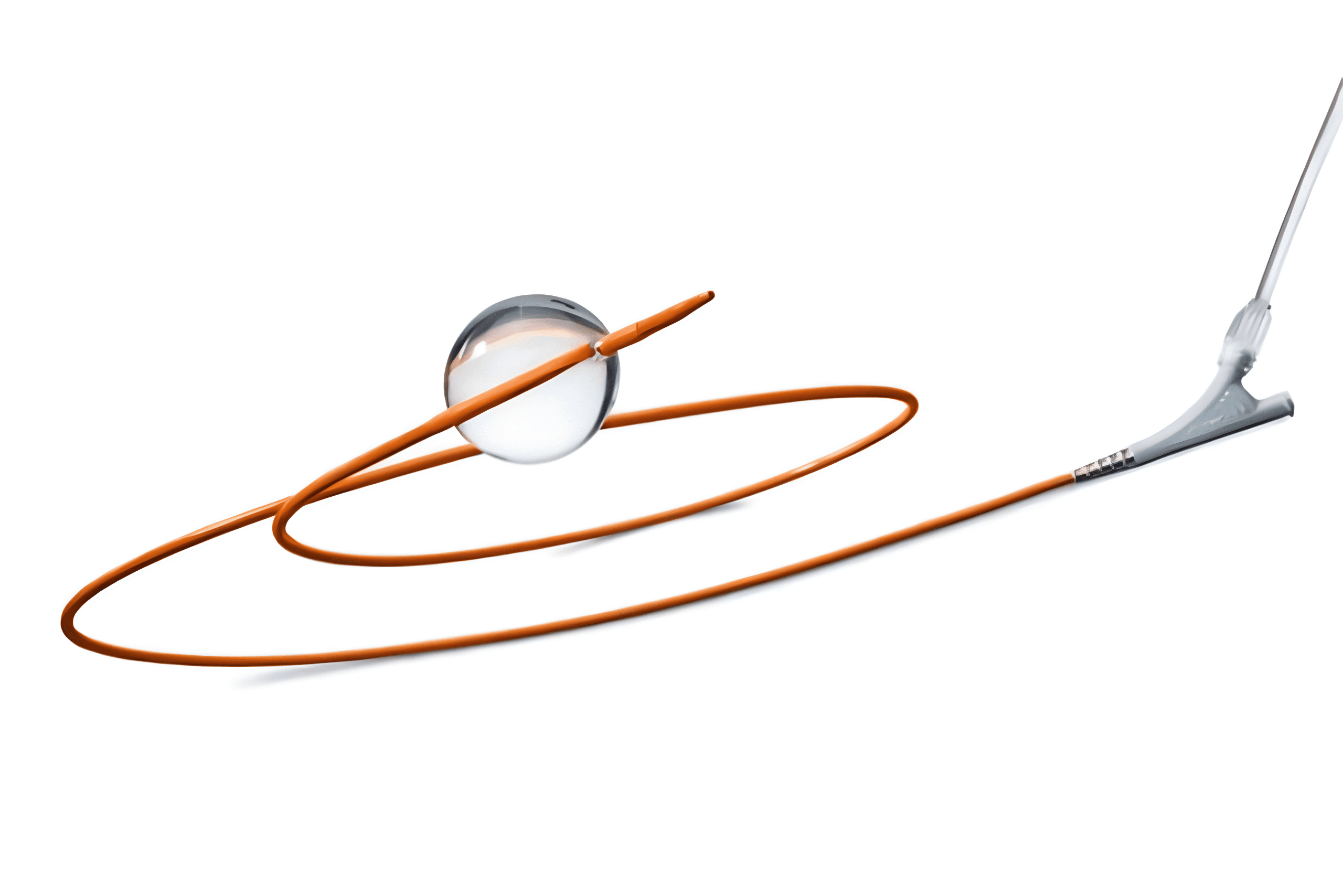 O E-xpand utiliza um balão compatível que se caracteriza por tempos de inflação e deflação particularmente curtos. O balão pode ser inflado até um diâmetro de 50 mm. O balão possui marcadores radiopacos em ambas as extremidades para posicionamento exato. O cateter de 100 cm de comprimento é compatível com fios-guia 0,035″ e pode ser colocado com bainha 12 F.